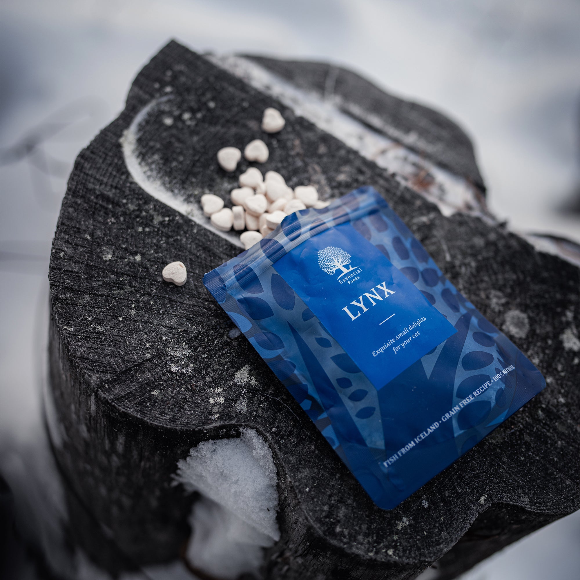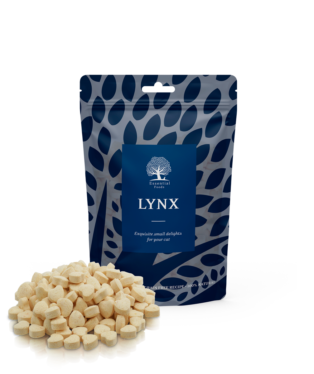 Denne eminente kombination af torsk og kuller er vores bud på en ypperlig, lille godbid. En ESSENTIAL hyldest til katte. Direkte fra Island og helt igennem naturlig er LYNX alt og mere til i en lille bid. Og du ved, at det er den ægte vare, når du får færten af den. Dette er 100% FISK! Ideel for både katte og killinger, og så vækker den endda også stor begejstring hos hunde.